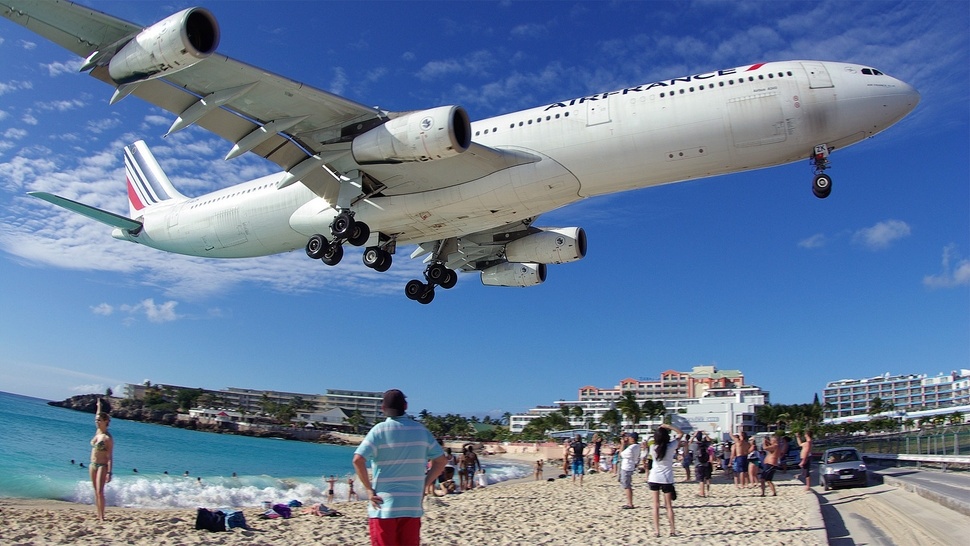 15) La pista de aterrizaje del Aeropuerto Internacional Princesa Juliana, en la isla caribeña de San Martín, tiene 2.300 metros, demasiado escasa para aviones de gran envergadura. Por eso los aparatos vuelan literalmente por encima de las cabezas de los turistas en la playa Maho Beach (y no, no es una foto trucada).