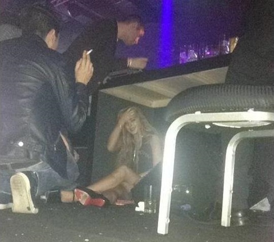 En una fotografía publicada en Twitter por un asistente al evento, se muestra a la actriz y cantante de 26 años tirada en el suelo, debajo de una mesa rodeada por algunas personas, según informa el portal TMZ.com.