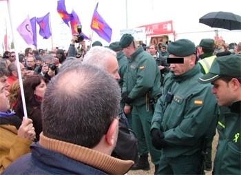 Efectivos de la Guardia Civil desplegados en la campa de Villalar -donde todos los años se celebra de forma multitudinaria el Día de Castilla y León en esta localidad vallisoletana- dificultaron este lunes al cortejo de Izquierda Unida, que encabezaba Cayo Lara, el acceso al monolito donde se realiza el homenaje a los Comuneros castellanos y poder cumplir así con la tradicional actividad política preparada anualmente el 23 de abril.