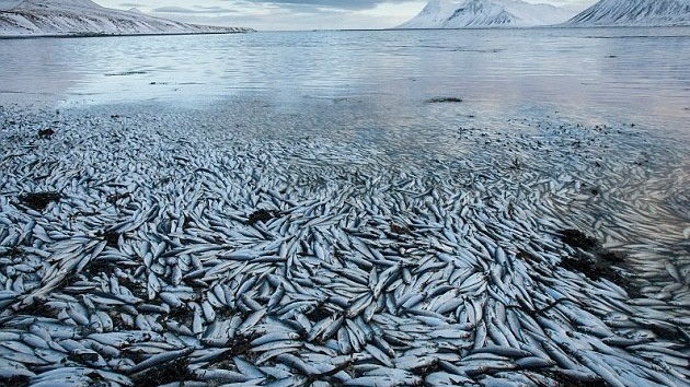Millones de peces aparecieron muertos flotando en un fiordo al norte de la península de Snaefellsnes, en Islandia. Por el momento se desconocen las causas que provocaron este fenómeno, pero los expertos consideran que podría ser por falta de oxígeno.