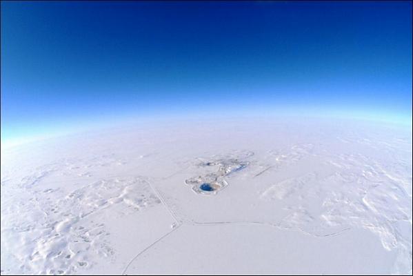 Se trata en realidad de una gigantesca intervención del hombre, la Mina de Diamantes Diavik ( Diavik Diamond Mine). La imagen pertenece a la última galería publicada en la página oficial de la mina de Diavik, donde pueden encontrarse más imágenes impresionantes.